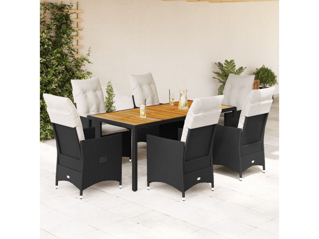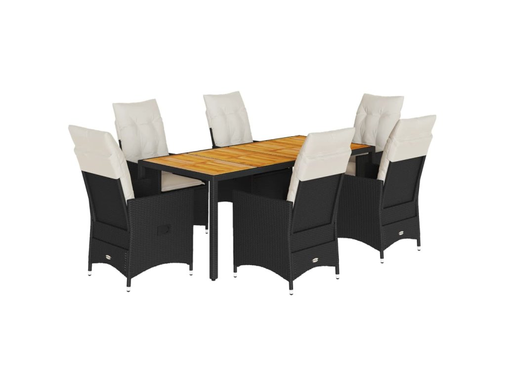 vidaXL 7-dielna záhradná jedálenská súprava a vankúše čierna polyratan