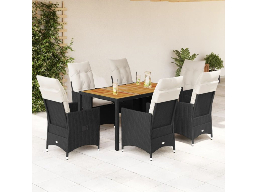 vidaXL 7-dielna záhradná jedálenská súprava a vankúše čierna polyratan