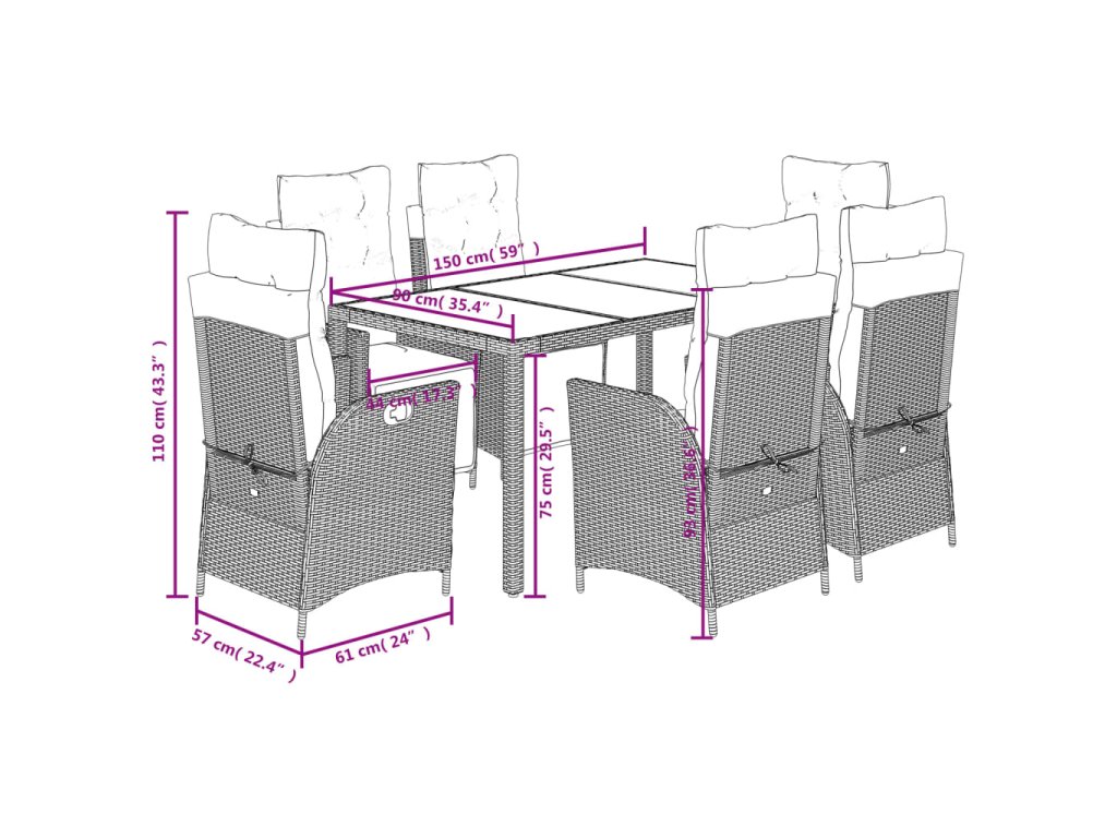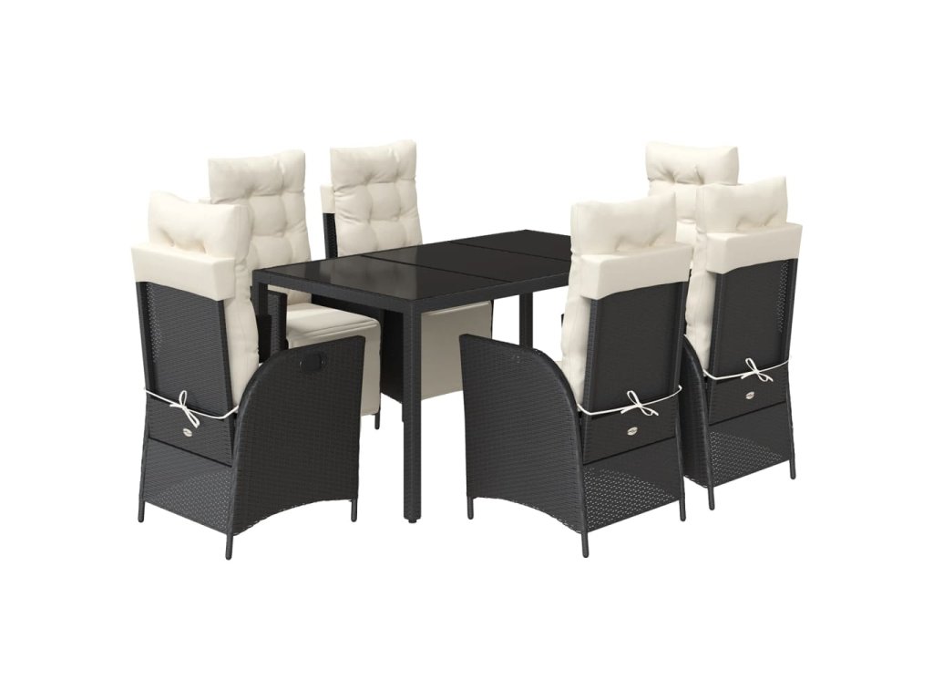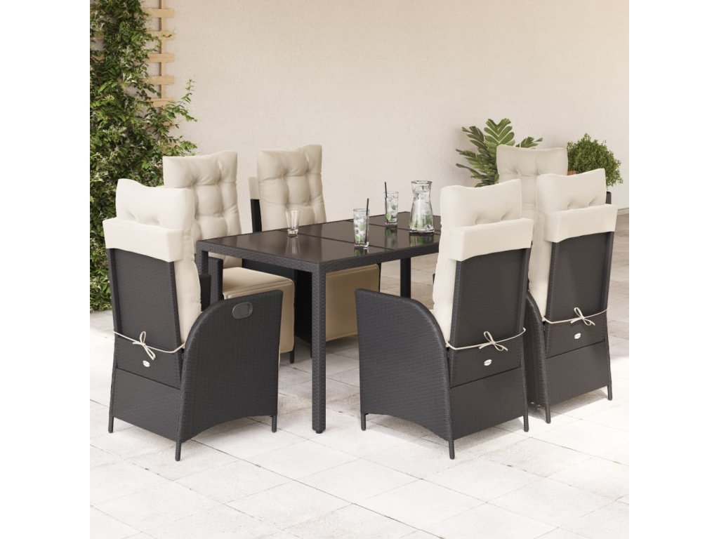 vidaXL 7-dielna záhradná jedálenská súprava a vankúše čierna polyratan