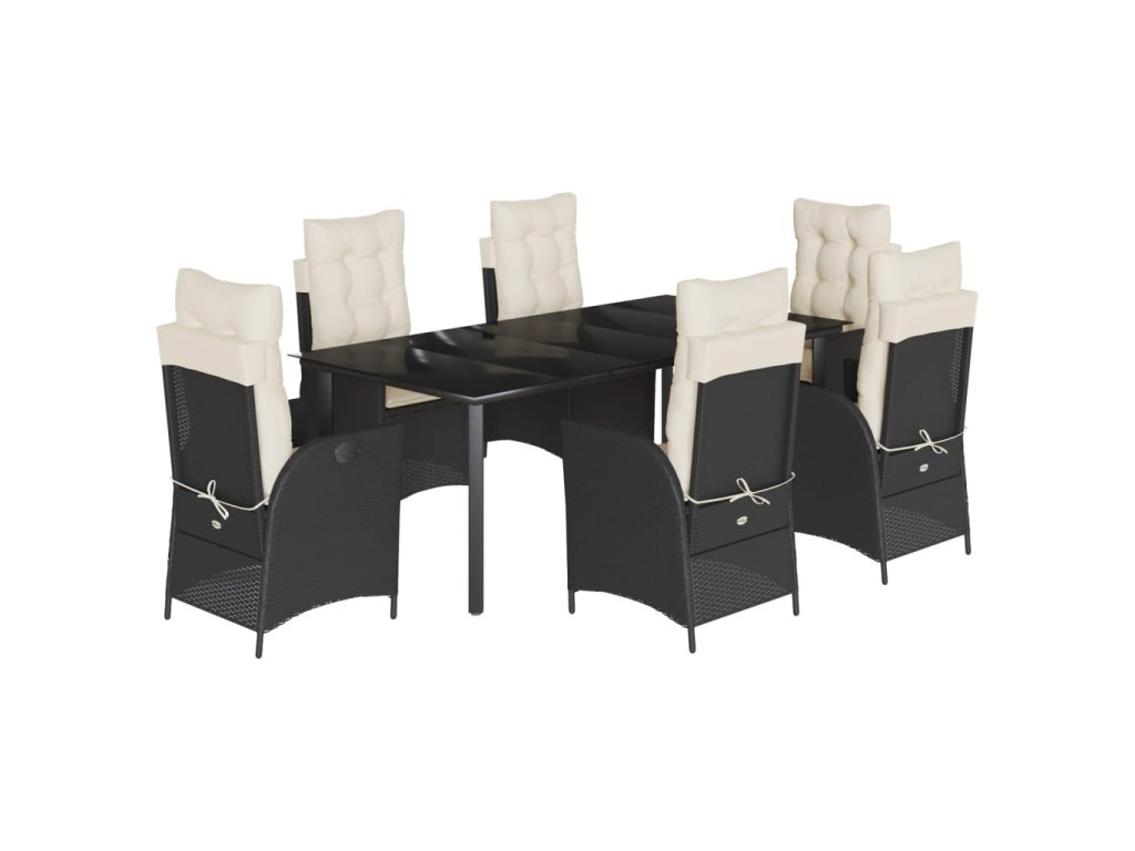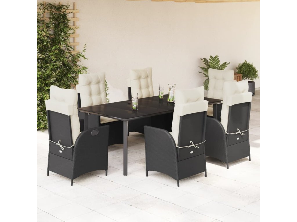 vidaXL 7-dielna záhradná jedálenská súprava a vankúše čierna polyratan