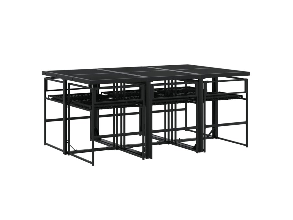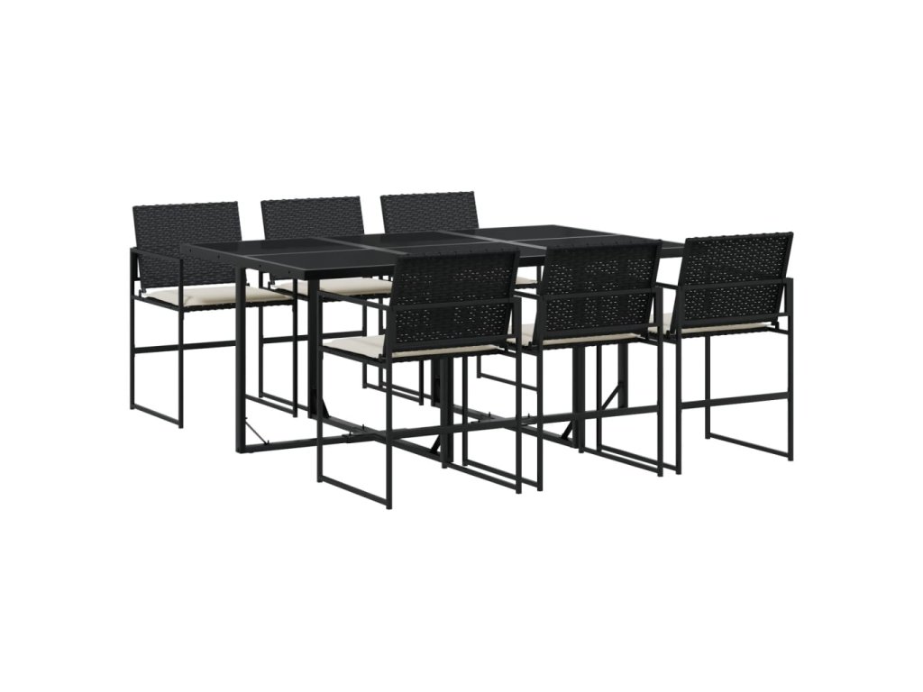 vidaXL 7-dielna záhradná jedálenská súprava a vankúše čierna polyratan