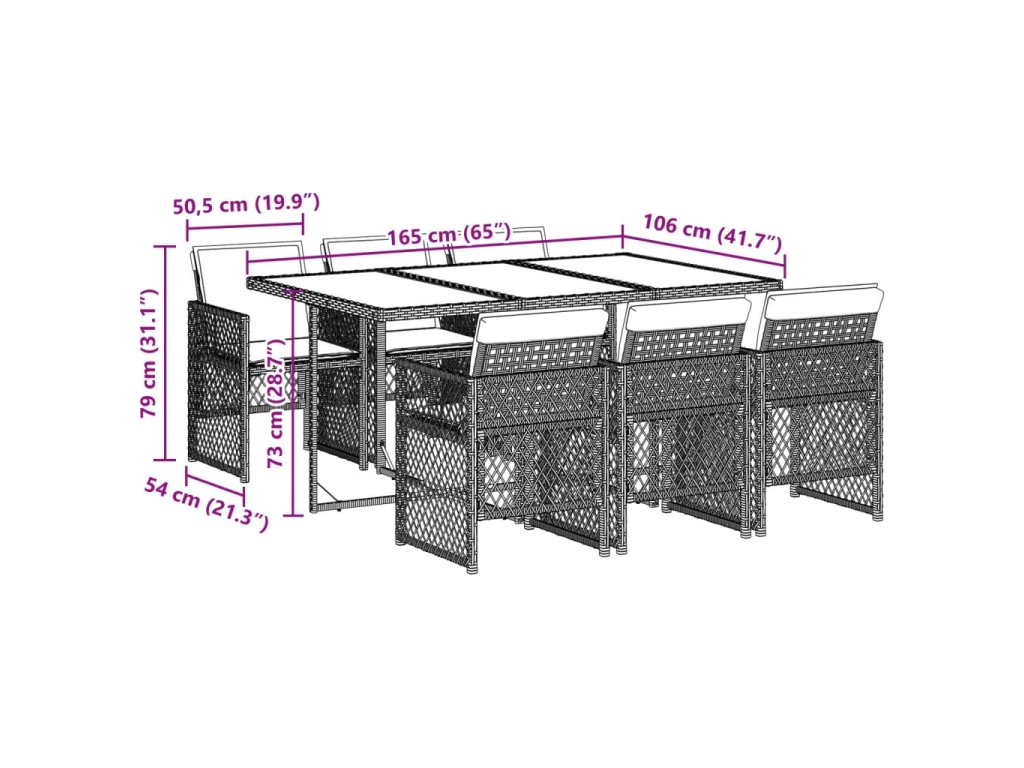 vidaXL 7-dielna záhradná jedálenská súprava a vankúše čierna polyratan