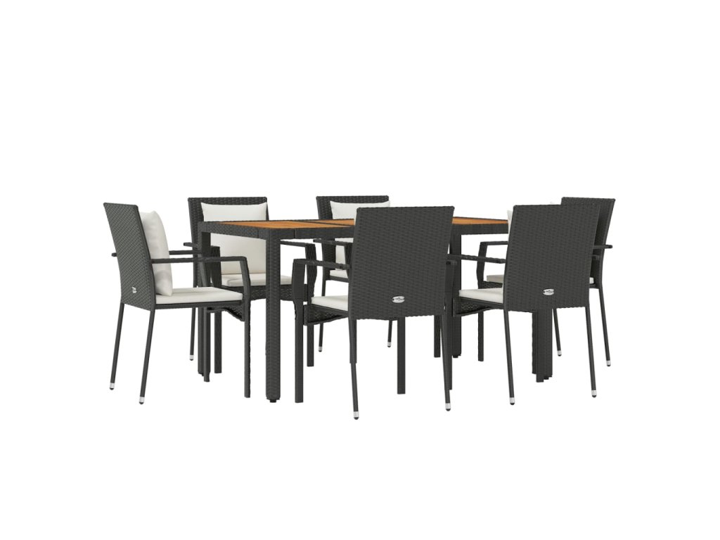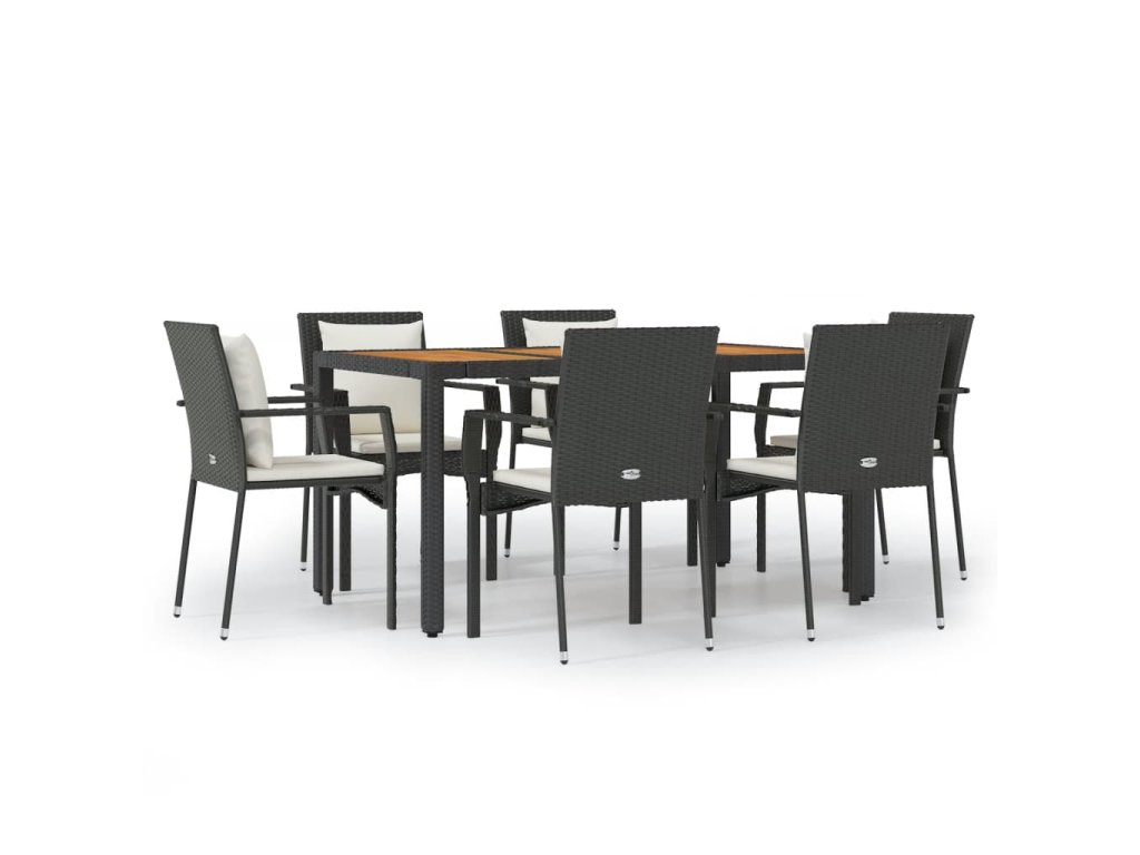 vidaXL 7-dielna záhradná jedálenská súprava a vankúše čierna polyratan