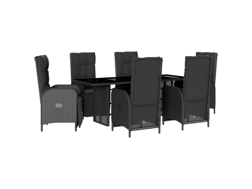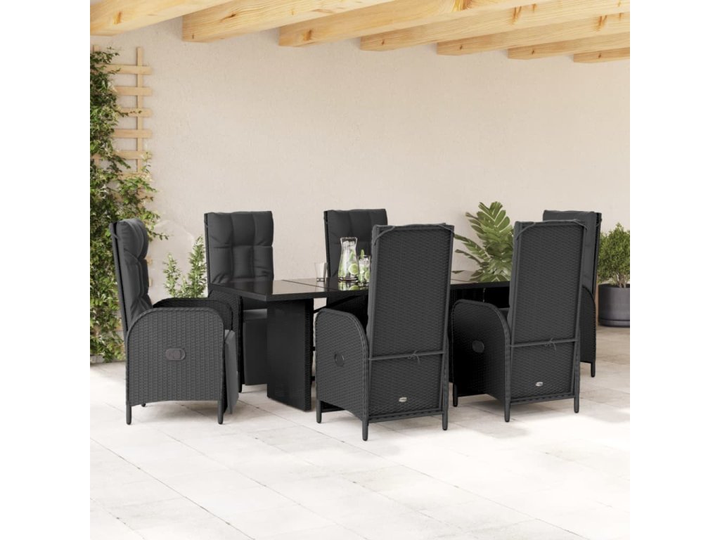 vidaXL 7-dielna záhradná jedálenská súprava a vankúše čierna polyratan