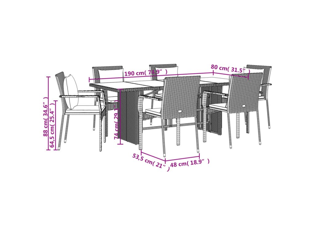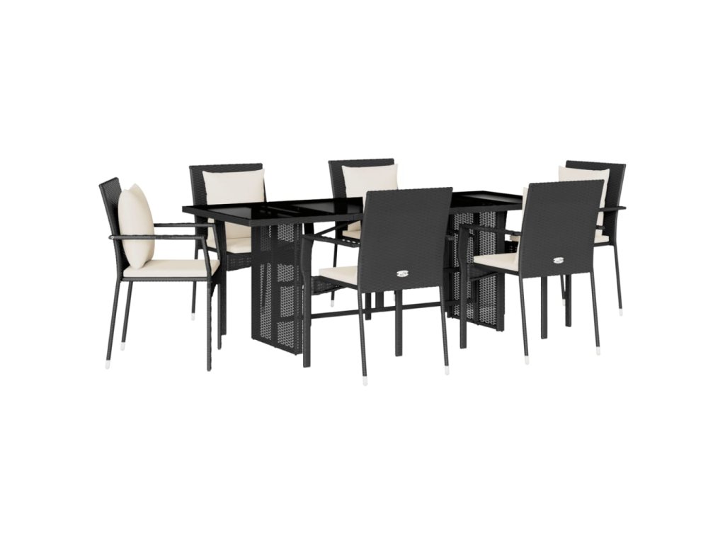 vidaXL 7-dielna záhradná jedálenská súprava a vankúše čierna polyratan
