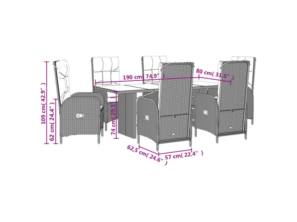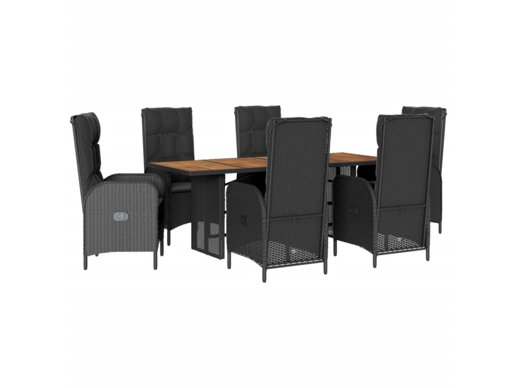 vidaXL 7-dielna záhradná jedálenská súprava a vankúše čierna polyratan