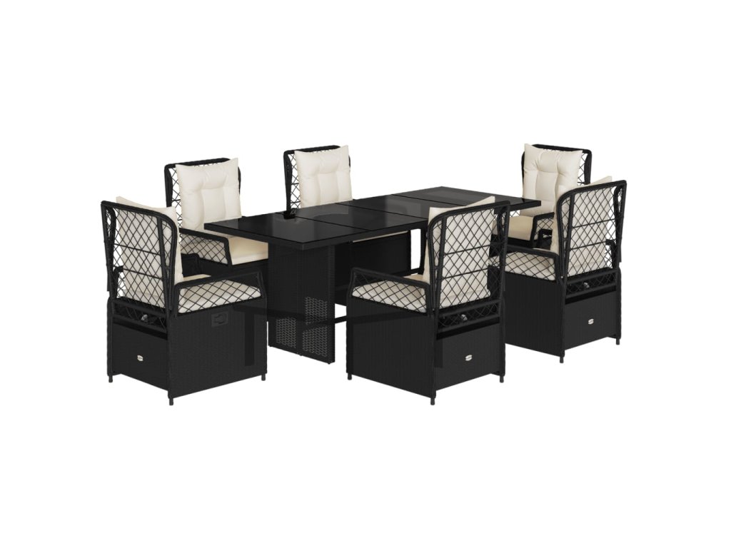 vidaXL 7-dielna záhradná jedálenská súprava a vankúše čierna polyratan