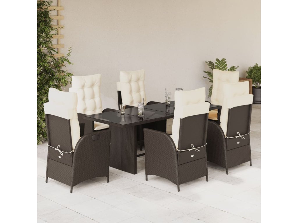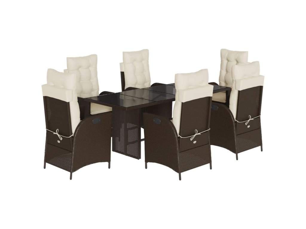 vidaXL 7-dielna záhradná jedálenská súprava a vankúše hnedá polyratan