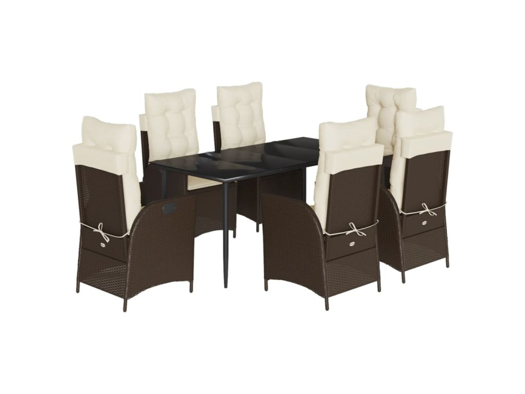 vidaXL 7-dielna záhradná jedálenská súprava a vankúše hnedá polyratan