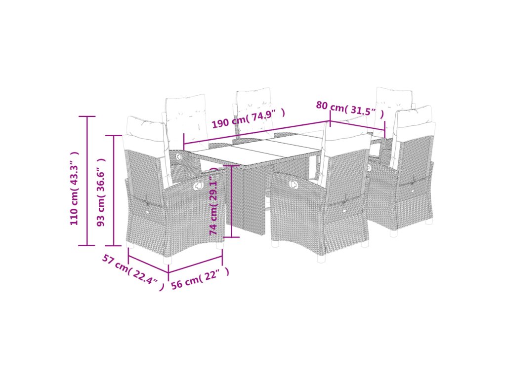 vidaXL 7-dielna záhradná jedálenská súprava a vankúše hnedá polyratan