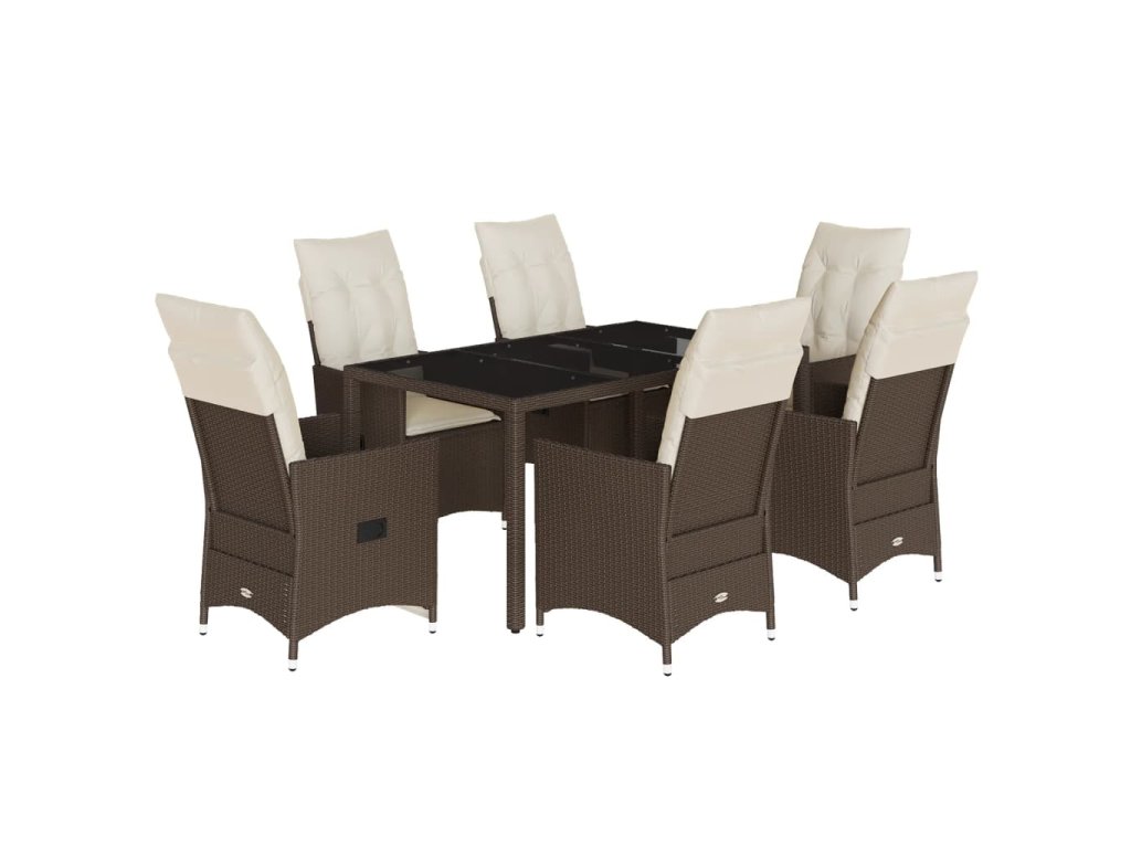 vidaXL 7-dielna záhradná jedálenská súprava a vankúše hnedá polyratan