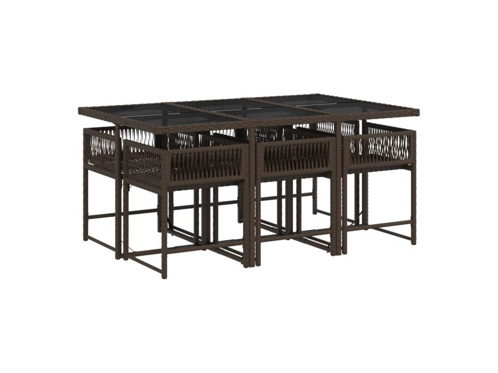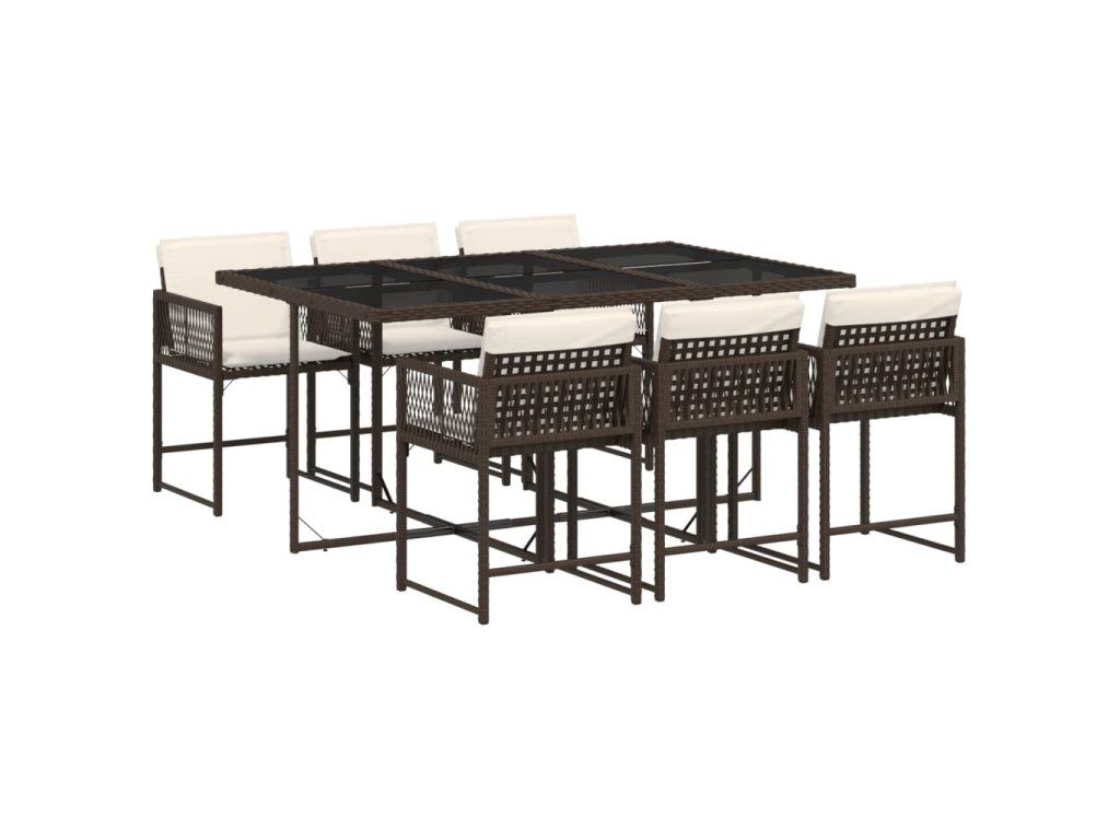 vidaXL 7-dielna záhradná jedálenská súprava a vankúše hnedá polyratan