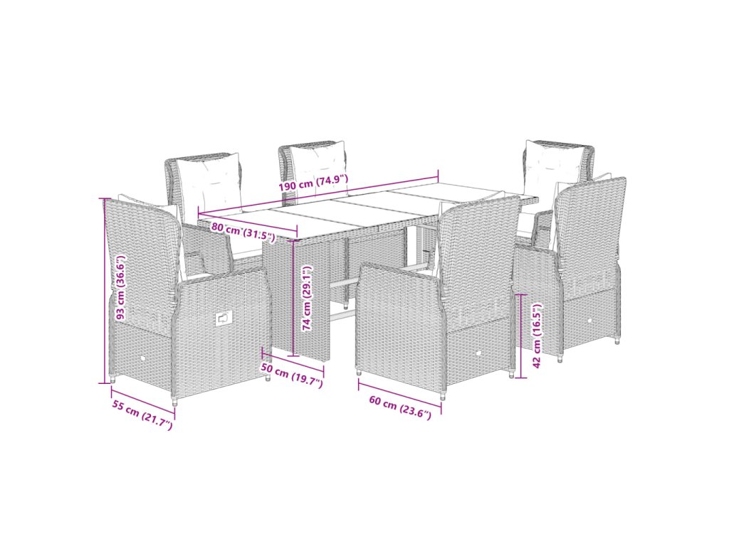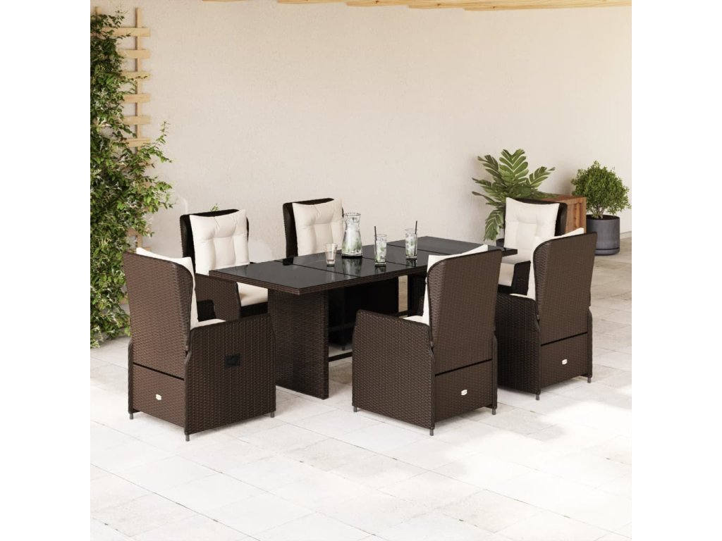 vidaXL 7-dielna záhradná jedálenská súprava a vankúše hnedá polyratan