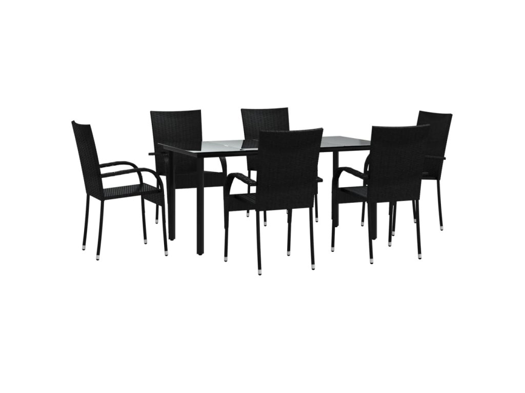 vidaXL 7-dielna záhradná jedálenská súprava čierna polyratan