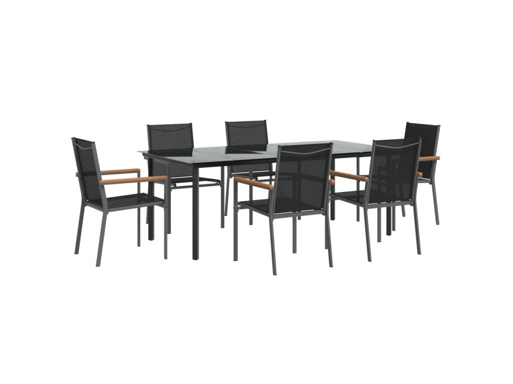 vidaXL 7-dielna záhradná jedálenská súprava čierna textilén a oceľ