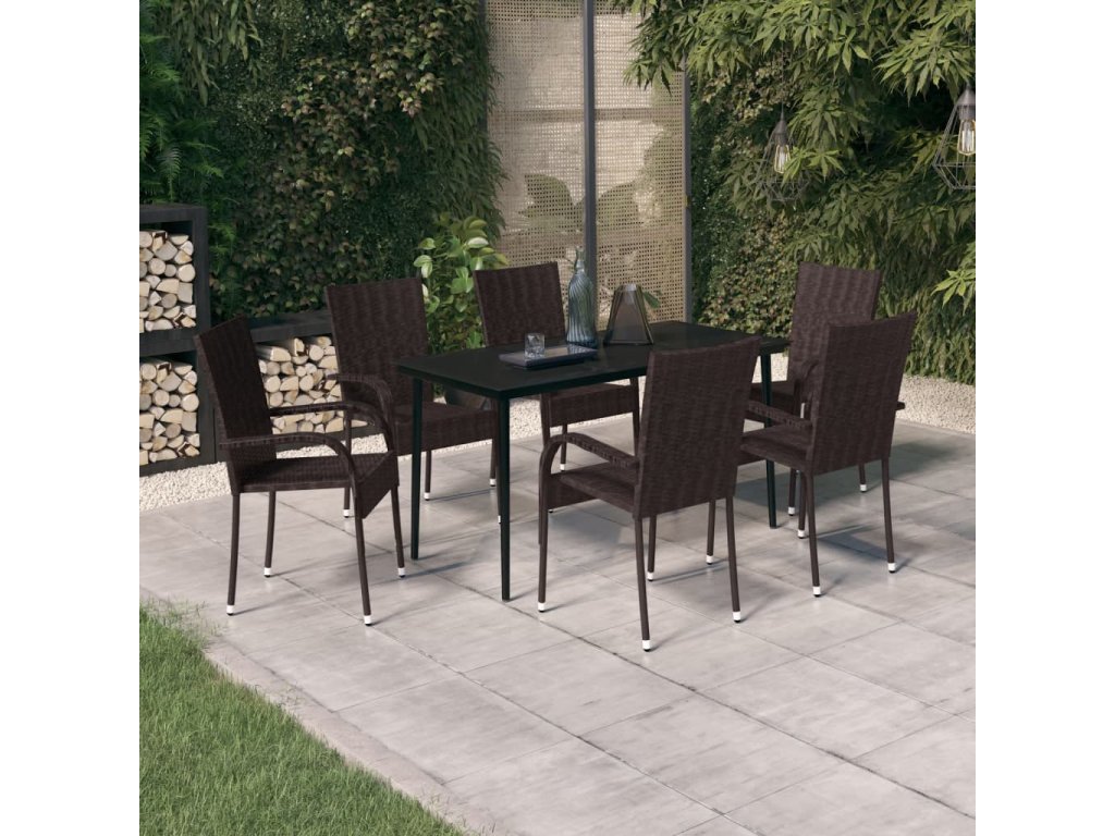 vidaXL 7-dielna záhradná jedálenská súprava hnedá a čierna