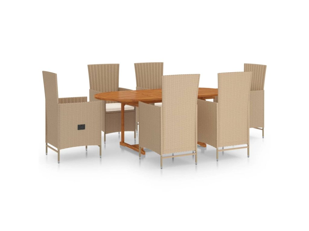 vidaXL 7-dielna záhradná jedálenská súprava polyratan béžová