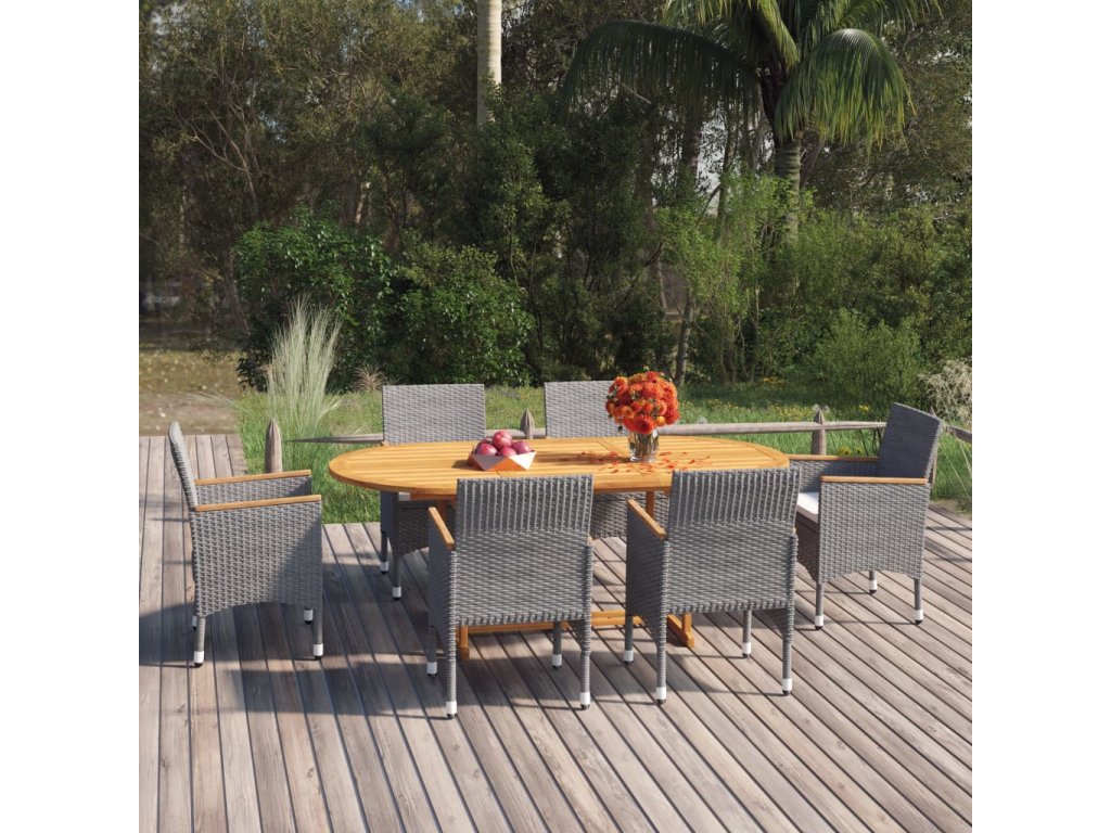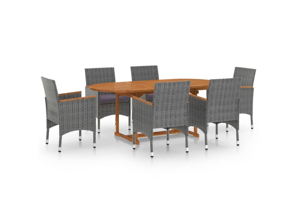 vidaXL 7-dielna záhradná jedálenská súprava polyratanová sivá