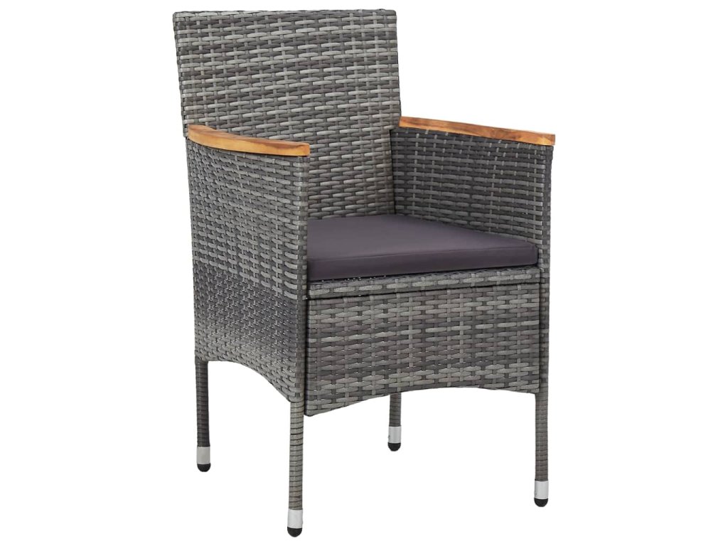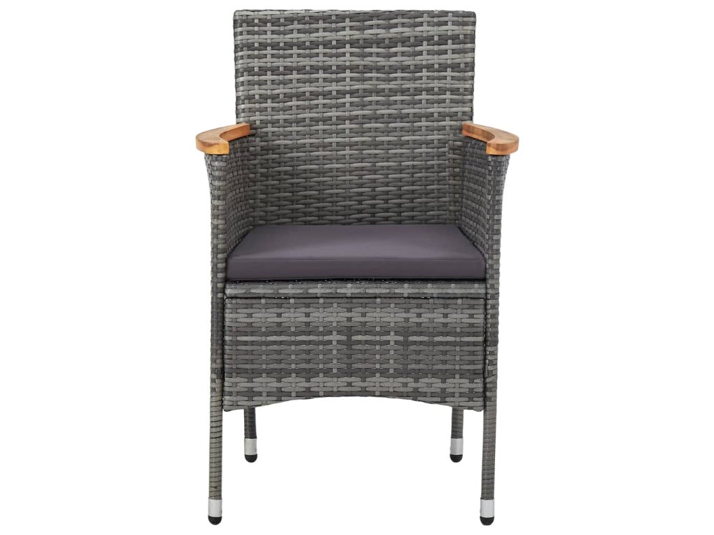 Jedálenský stôl je vyrobený z masívneho akáciového dreva, vďaka čomu je pevný a stabilný. Vďaka upravenému povrchu olejom je vhodný aj na vonkajšie použitie. Jedálenské stoličky s oceľovým rámom potiahnutým PE ratanom odolným voči poveternostným vplyvom sú pevné a ľahko sa čistia. Podrúčky sú nádherne zdobené masívnym akáciovým drevom, ktoré im dodáva rustikálny šarm. Husto polstrované podušky poskytnú extra pohodlie pri sedení.