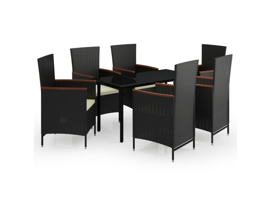vidaXL 7-dielna záhradná jedálenská súprava s vankúšmi čierna