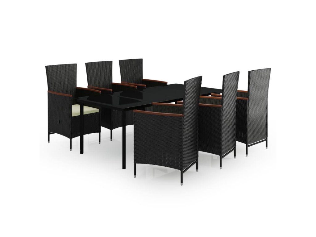 vidaXL 7-dielna záhradná jedálenská súprava s vankúšmi čierna