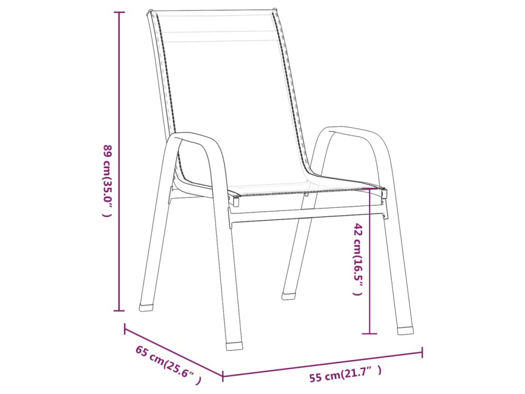 - Stoličky s úsporou miesta: Stoličky sú ideálne na váš balkón a do iných malých priestorov, pretože sa dajú stohovať aby sa ušetrilo miesto, keď sa nepoužívajú.