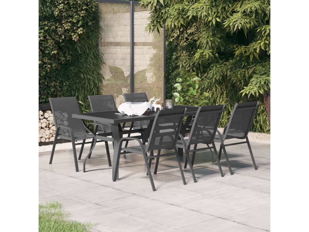 vidaXL 7-dielna záhradná jedálenská súprava sivá a čierna