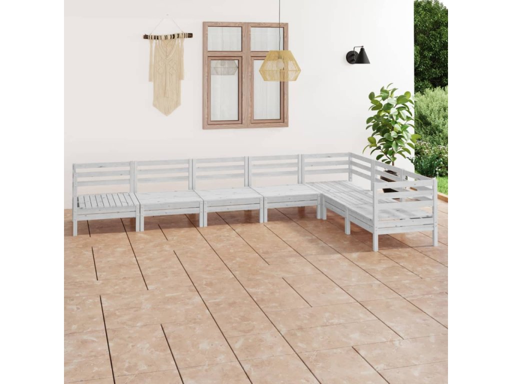 vidaXL 7-dielna záhradná sedacia súprava, borovicový masív, biela