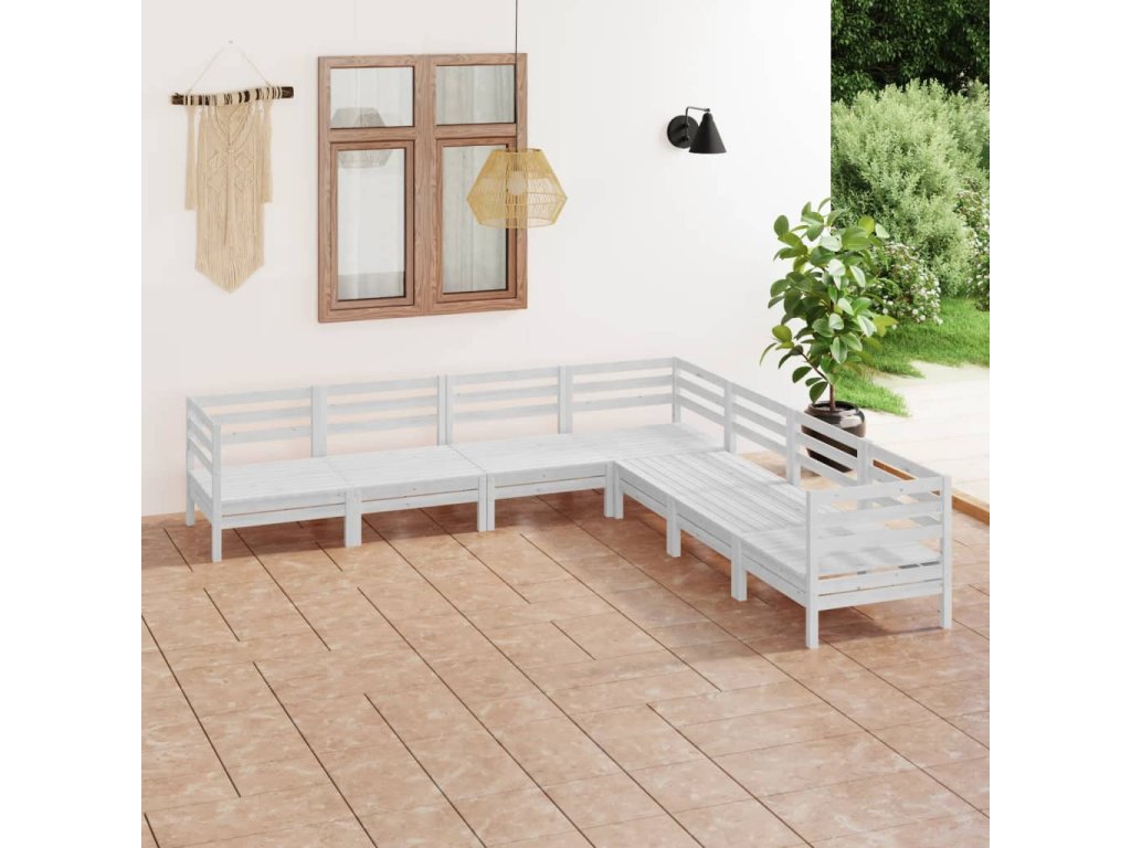 vidaXL 7-dielna záhradná sedacia súprava, borovicový masív, biela