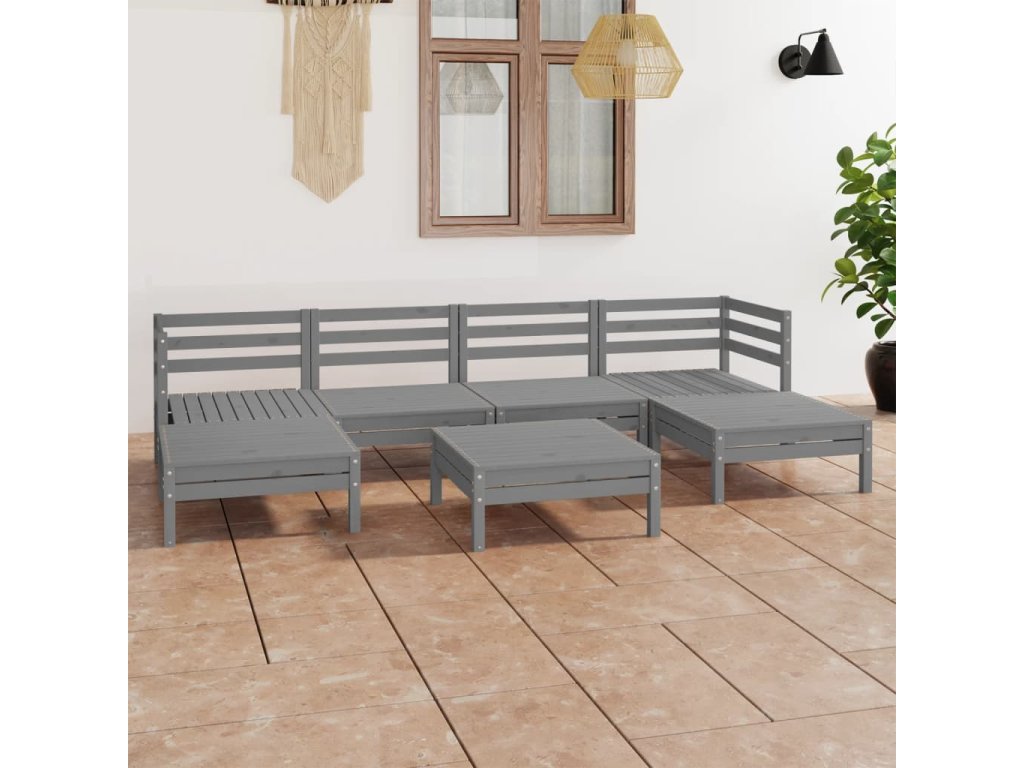 vidaXL 7-dielna záhradná sedacia súprava, sivá, borovicový masív