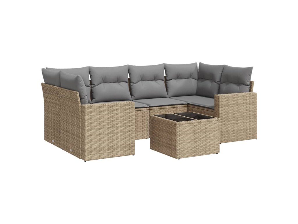 vidaXL 7-dielna záhradná sedacia súprava a vankúše béžová polyratan
