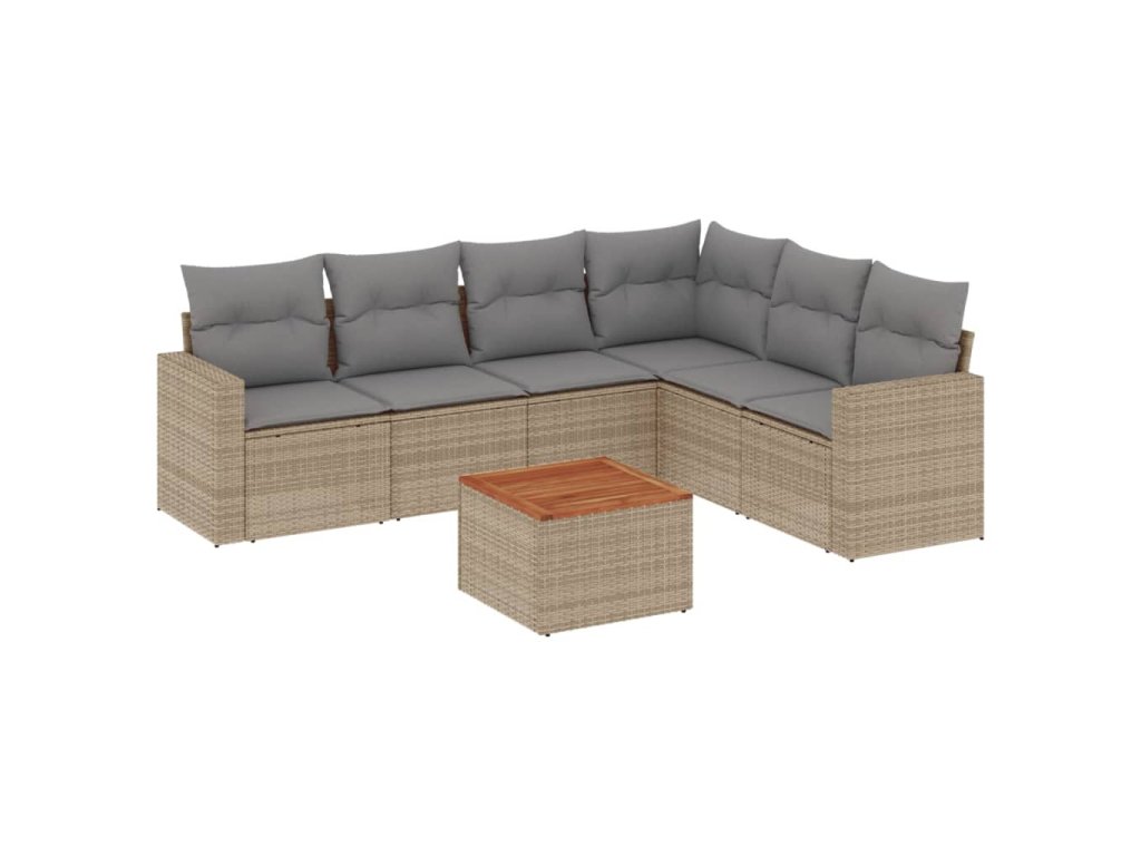 vidaXL 7-dielna záhradná sedacia súprava a vankúše béžová polyratan