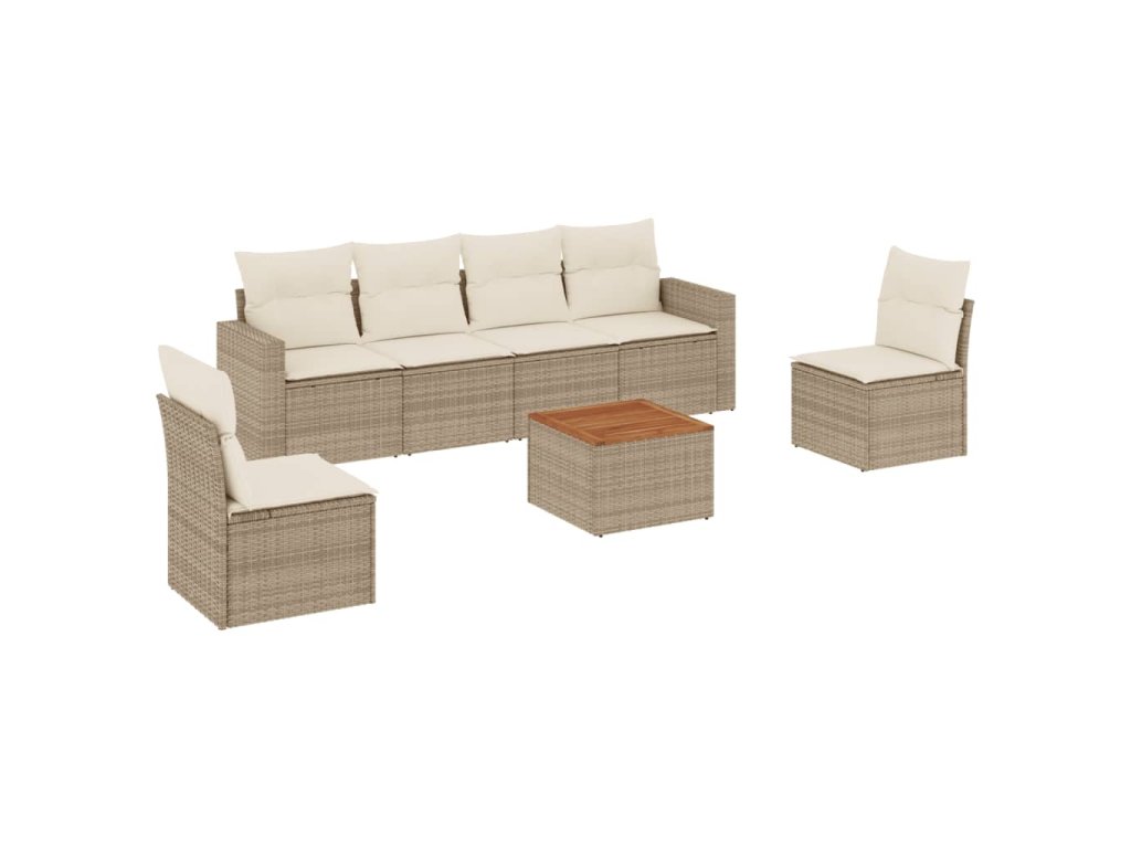 vidaXL 7-dielna záhradná sedacia súprava a vankúše béžová polyratan