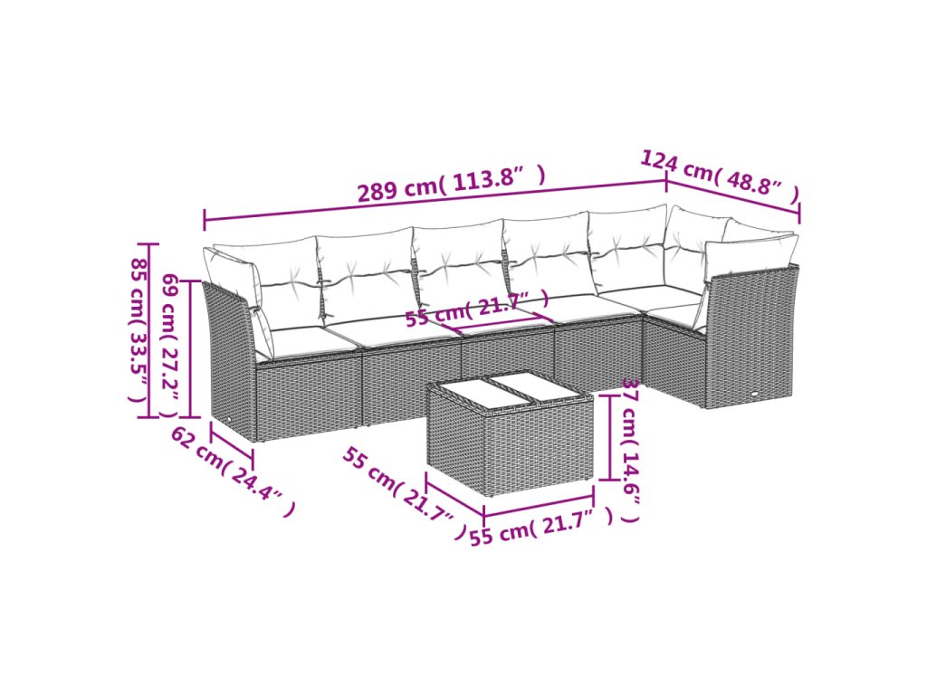 vidaXL 7-dielna záhradná sedacia súprava a vankúše béžová polyratan