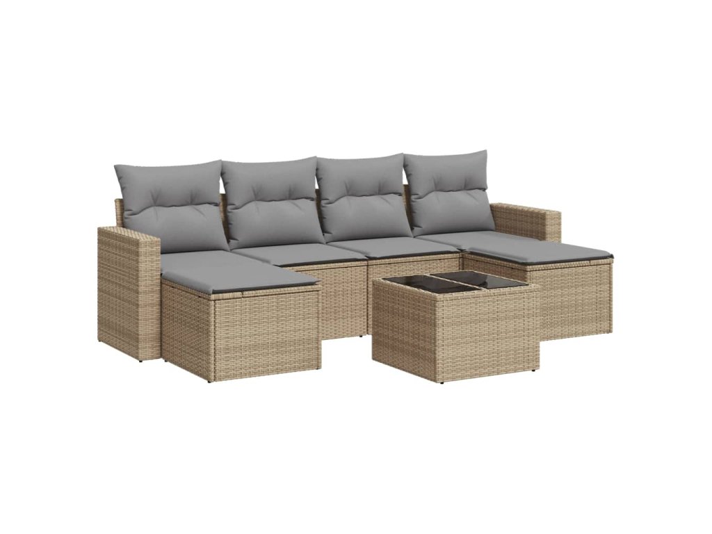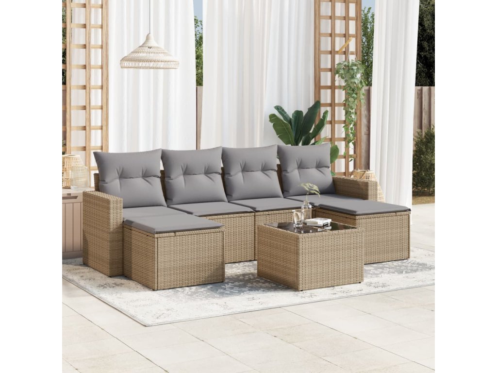vidaXL 7-dielna záhradná sedacia súprava a vankúše béžová polyratan