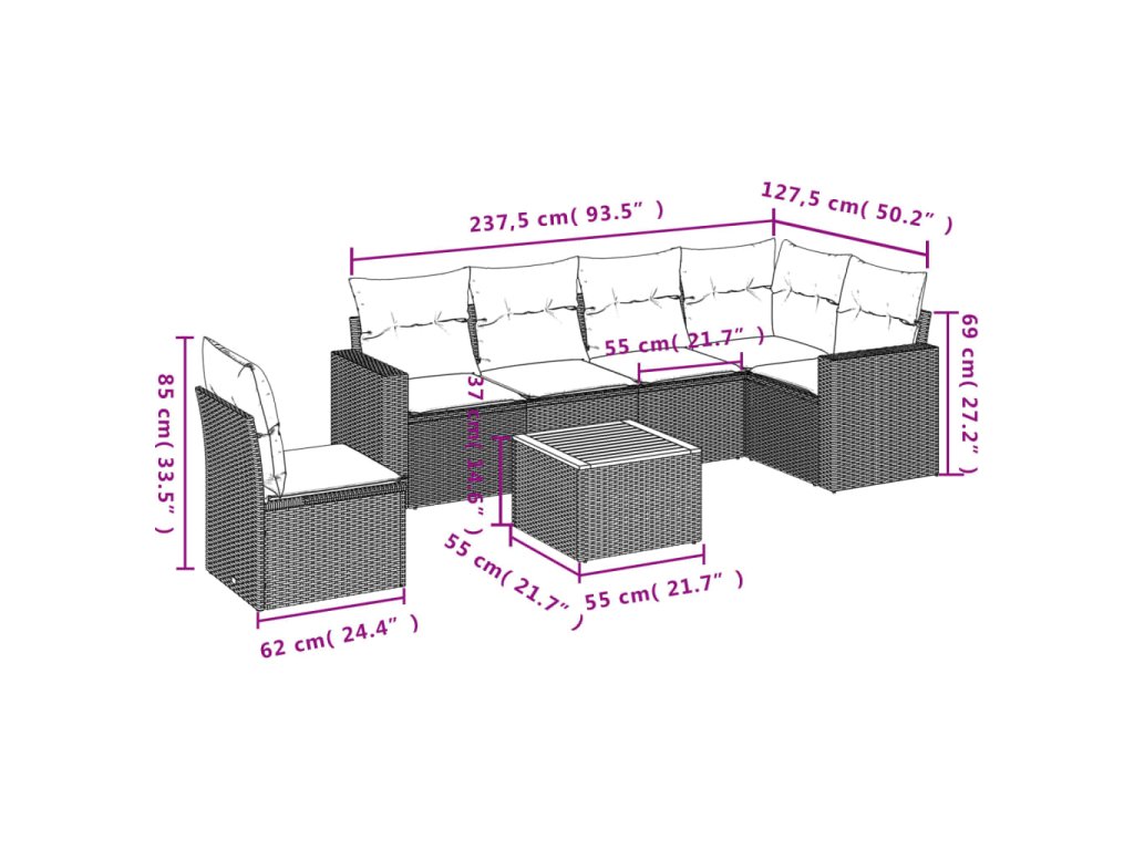 vidaXL 7-dielna záhradná sedacia súprava a vankúše béžová polyratan