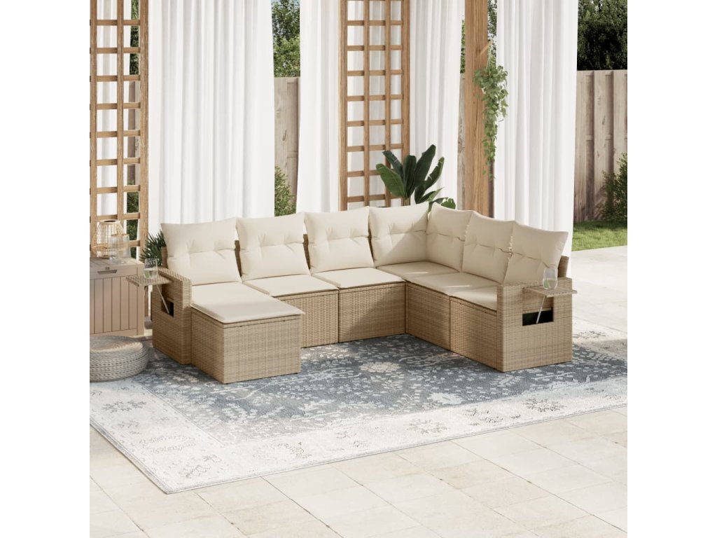 vidaXL 7-dielna záhradná sedacia súprava a vankúše béžová polyratan