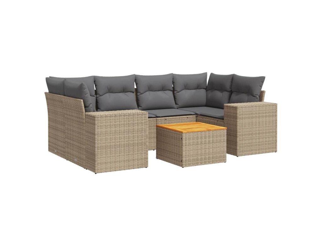 vidaXL 7-dielna záhradná sedacia súprava a vankúše béžová polyratan
