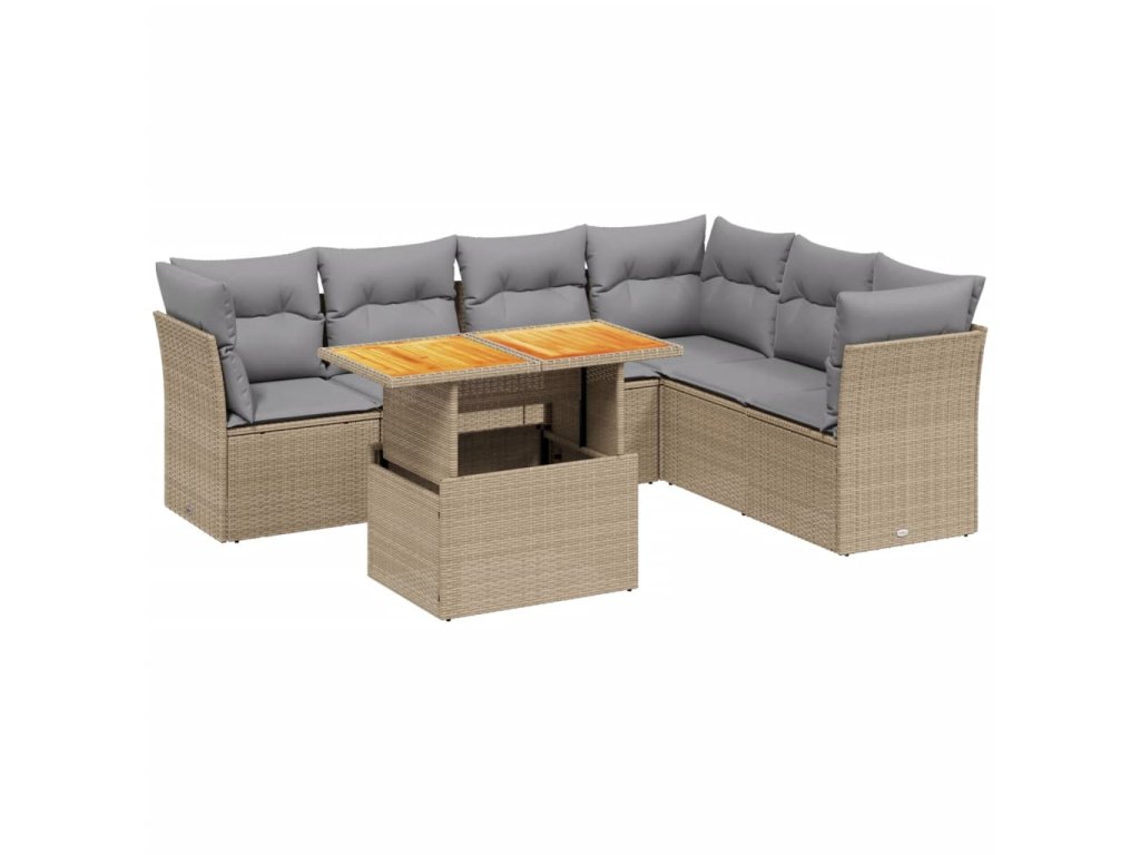 vidaXL 7-dielna záhradná sedacia súprava a vankúše béžová polyratan