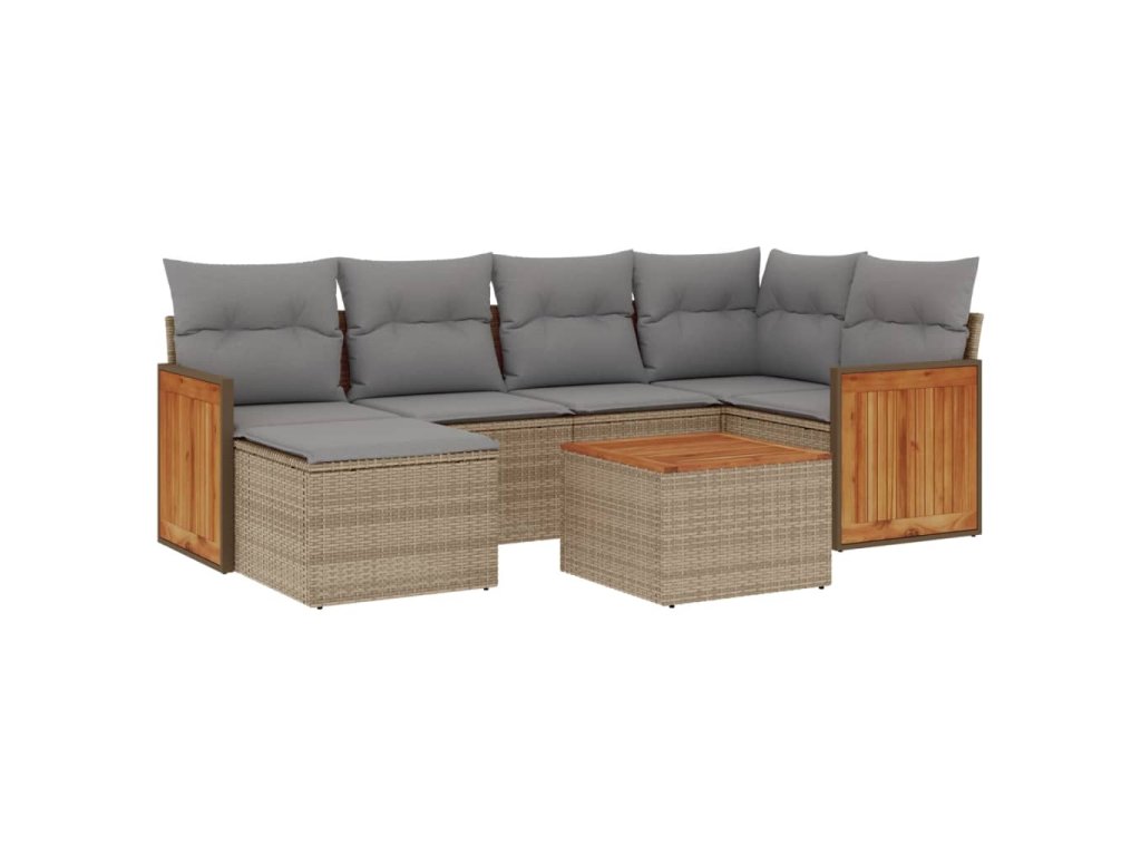 vidaXL 7-dielna záhradná sedacia súprava a vankúše béžová polyratan