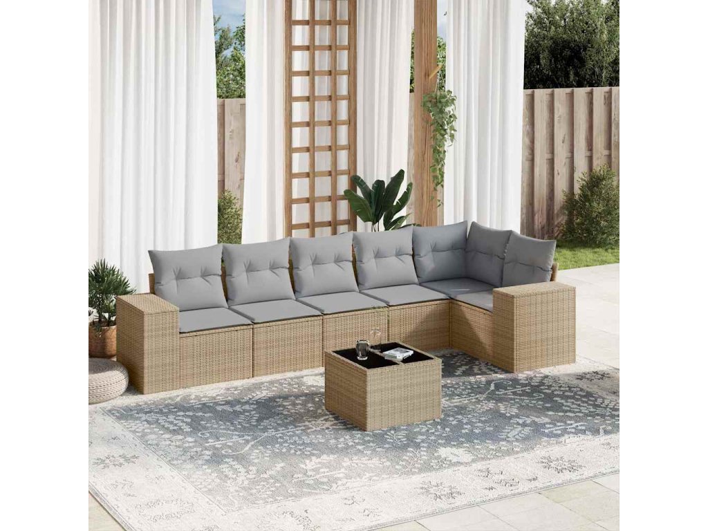 vidaXL 7-dielna záhradná sedacia súprava a vankúše béžová polyratan
