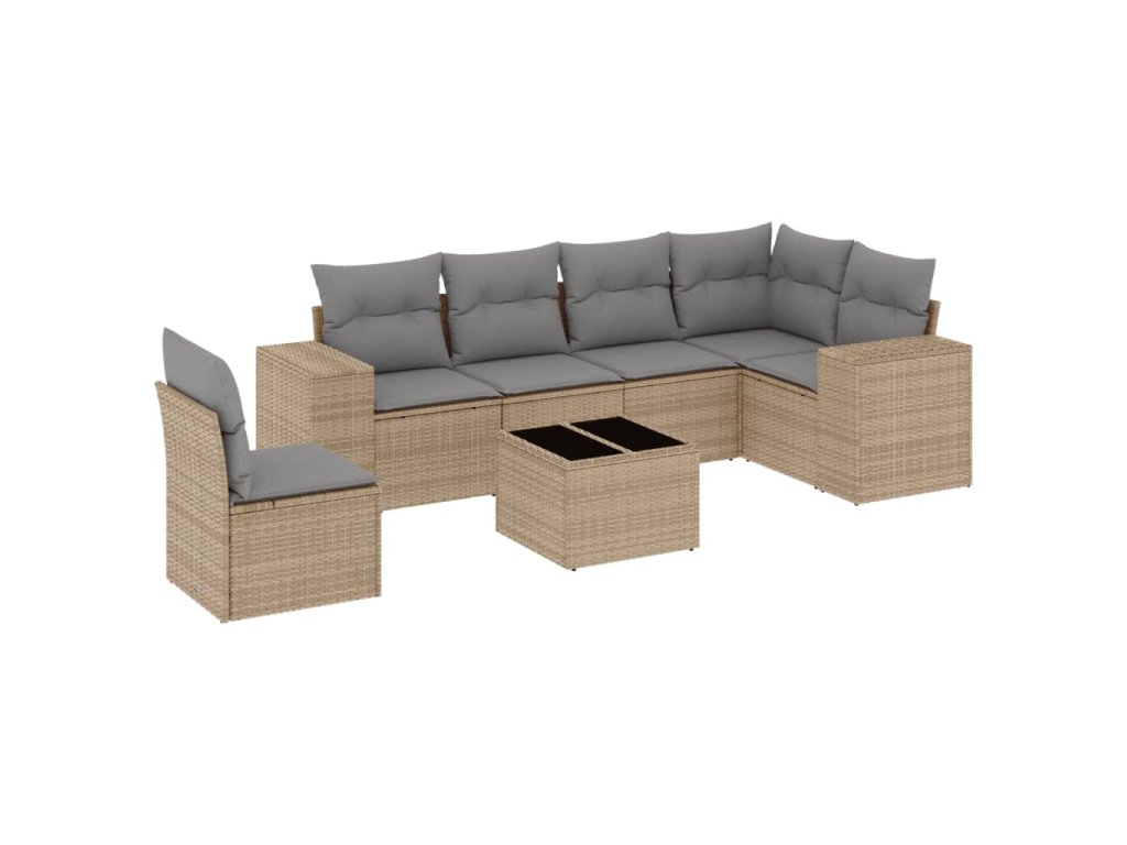 vidaXL 7-dielna záhradná sedacia súprava a vankúše béžová polyratan