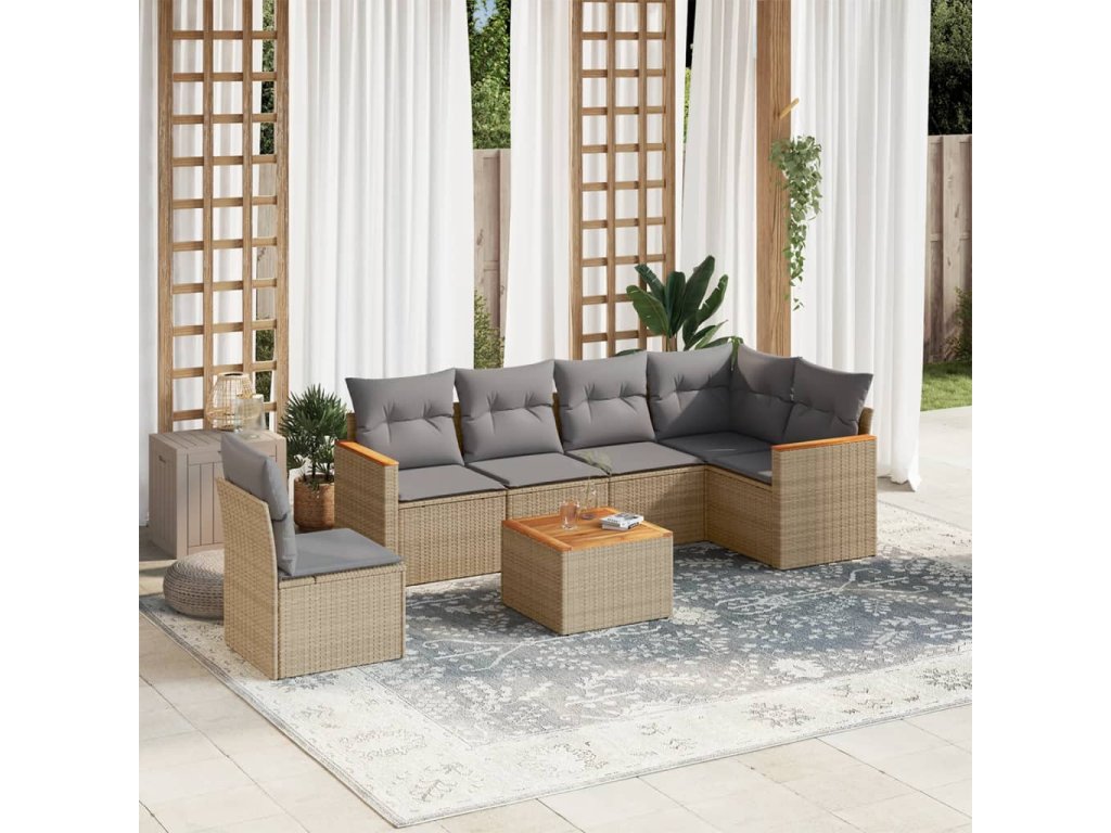 vidaXL 7-dielna záhradná sedacia súprava a vankúše béžová polyratan