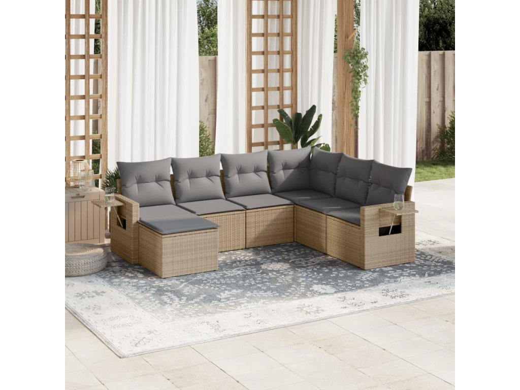 vidaXL 7-dielna záhradná sedacia súprava a vankúše béžová polyratan