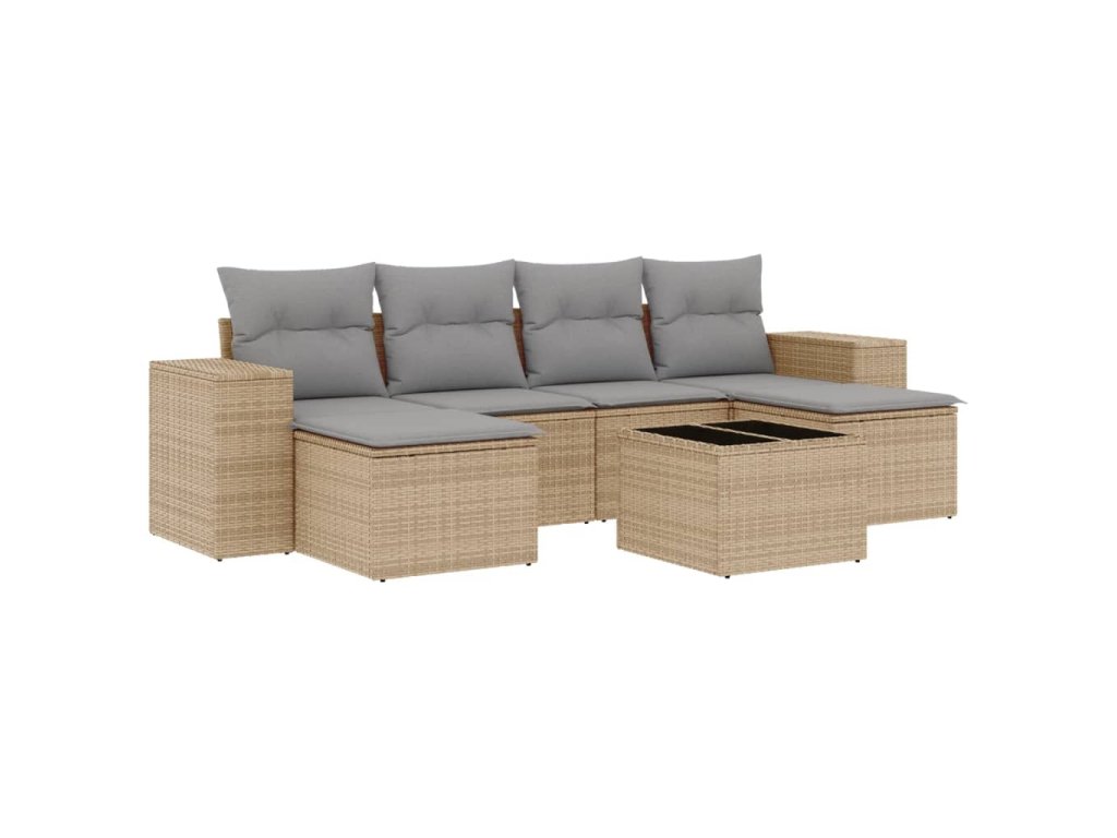 vidaXL 7-dielna záhradná sedacia súprava a vankúše béžová polyratan