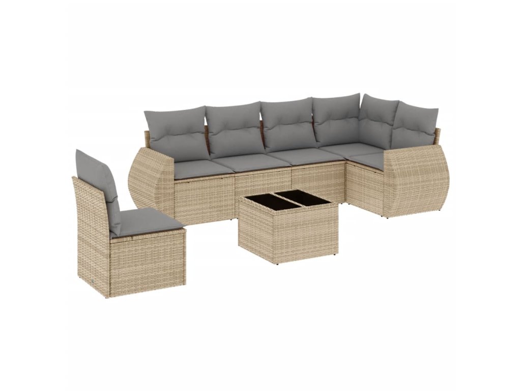 vidaXL 7-dielna záhradná sedacia súprava a vankúše béžová polyratan