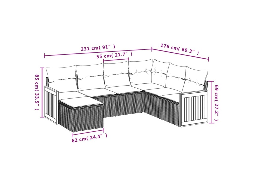 vidaXL 7-dielna záhradná sedacia súprava a vankúše béžová polyratan