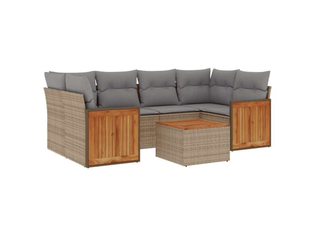 vidaXL 7-dielna záhradná sedacia súprava a vankúše béžová polyratan