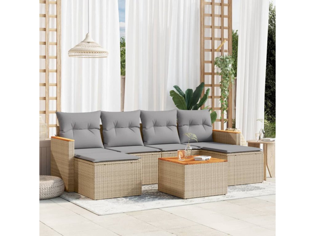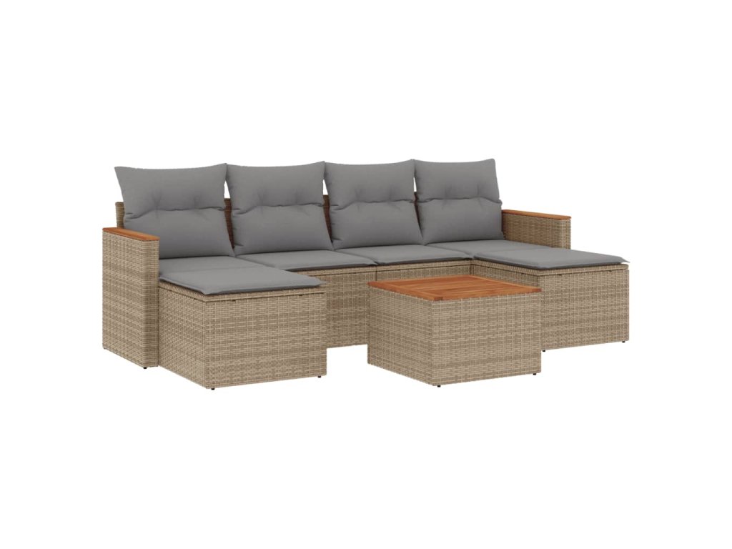 vidaXL 7-dielna záhradná sedacia súprava a vankúše béžová polyratan