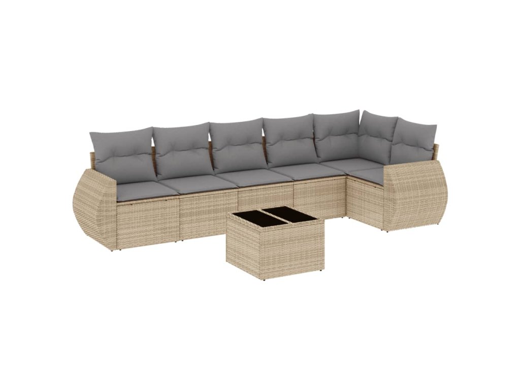 vidaXL 7-dielna záhradná sedacia súprava a vankúše béžová polyratan